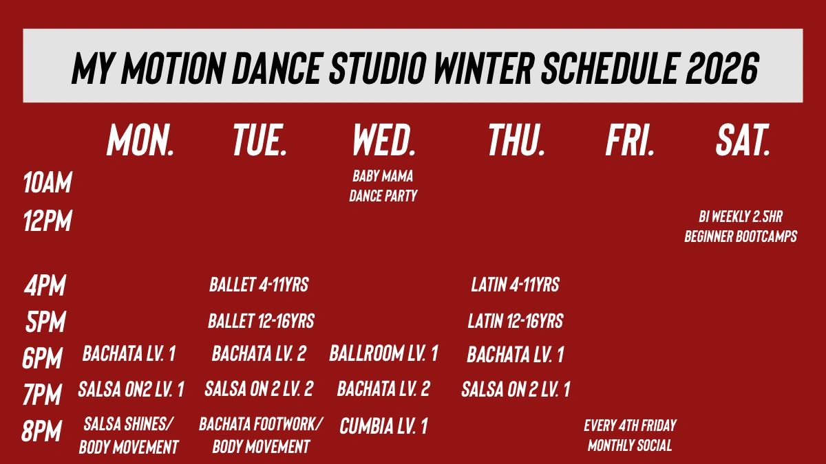 We offer a variety of group classes. Salsa, Bachata, Pachanga, Cha-cha, Rumba, Swing & More